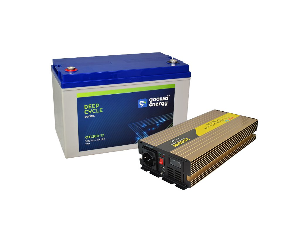 Sada trakčná batéria GOOWEI ENERGY OTL100-12 (100Ah) + menič ROGERELE REP2000-12 (2000W), 12V