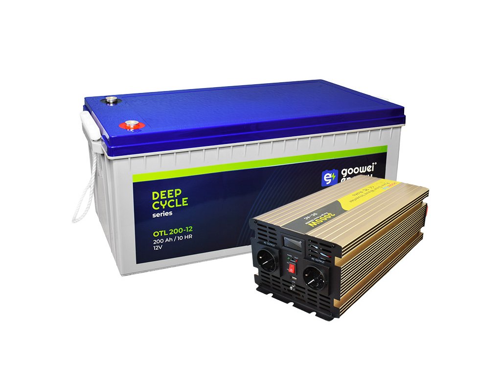 Sada trakčná batéria GOOWEI ENERGY OTL200-12 (200Ah) + menič ROGERELE REP3000-12 (3000W), 12V
