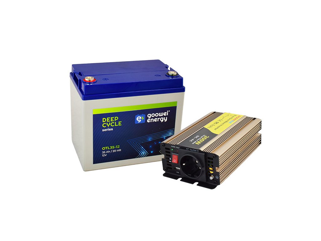 Sada trakčná batéria GOOWEI ENERGY OTL35-12 (35Ah) + menič ROGERELE REP300-12 (300W), 12V