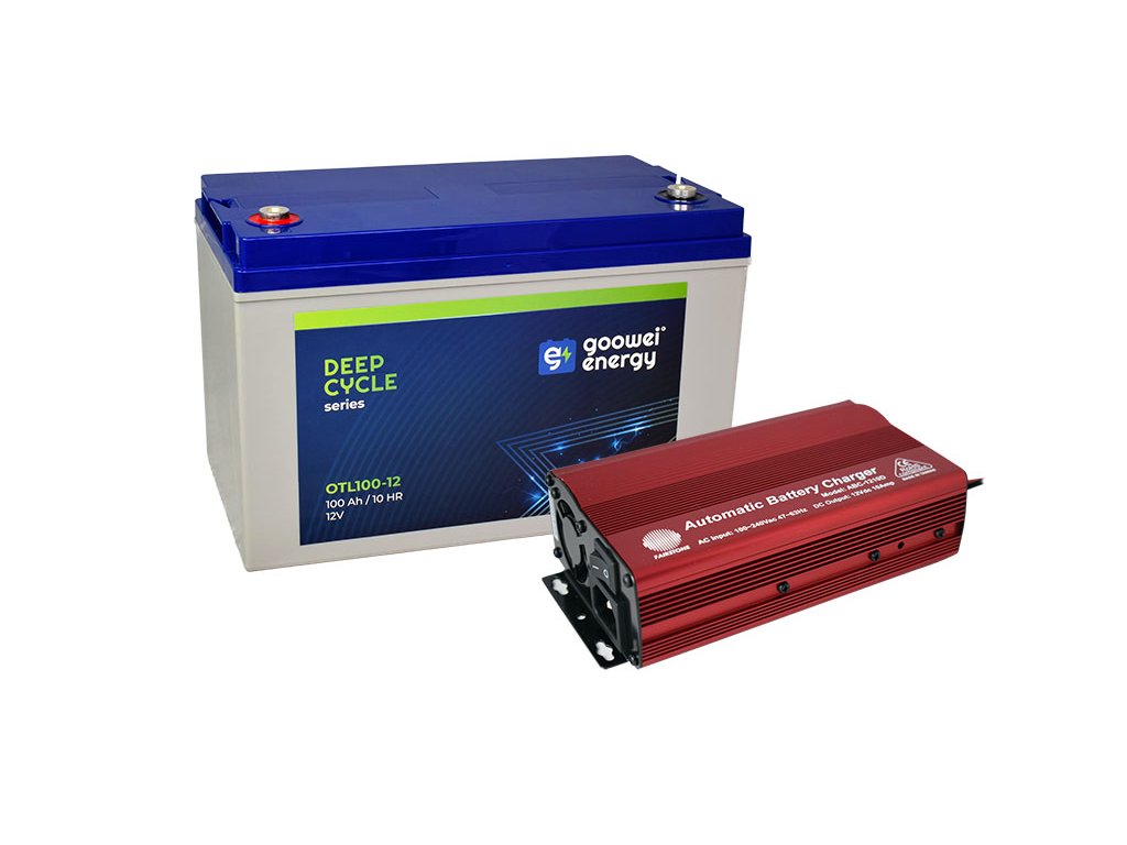 Set trakčná batéria GOOWEI ENERGY OTL100-12 (100Ah) + nabíjačka FST ABC-1210D (10A), 12V