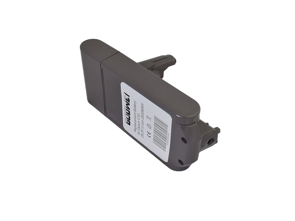 Výmenný akupack pre vysávač Dyson V10, 2600mAh, 25.2V. Výkonná batéria s novými vysoko kvalitnými článkami 100% kompatibilná s originálnou batériou. Batéria má zhodné rozmery a funguje ako originálna batéria vrátane použitia pôvodnej nabíjačky.