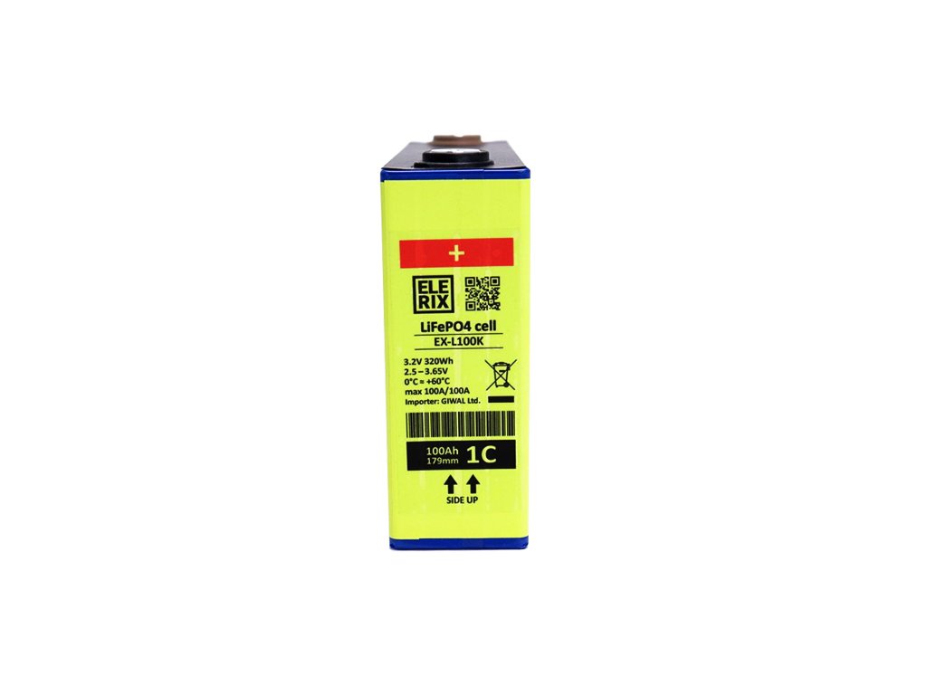 Priemyselný lítiový článok ELERIX s vysokou hustotou energie, vyrobený bezpečnou technológiou LiFePO4. Článok je vhodný na prepájanie do väčších celkov, čím vznikne batéria s menovitým napätím 12V / 24V / 48V atď.