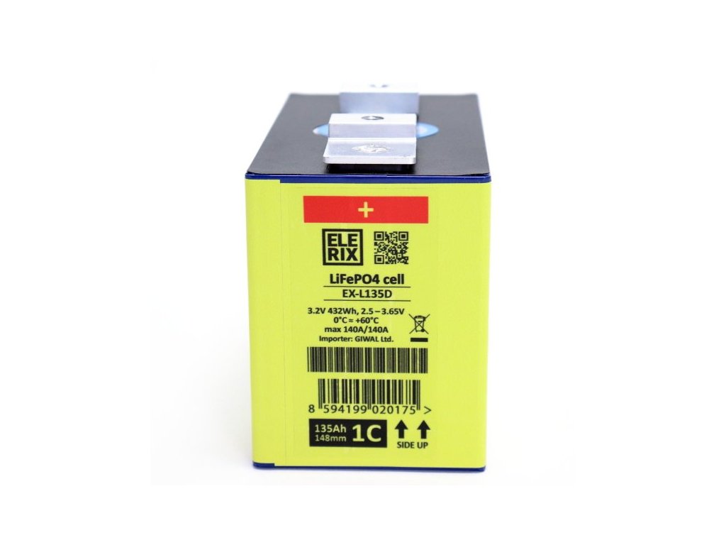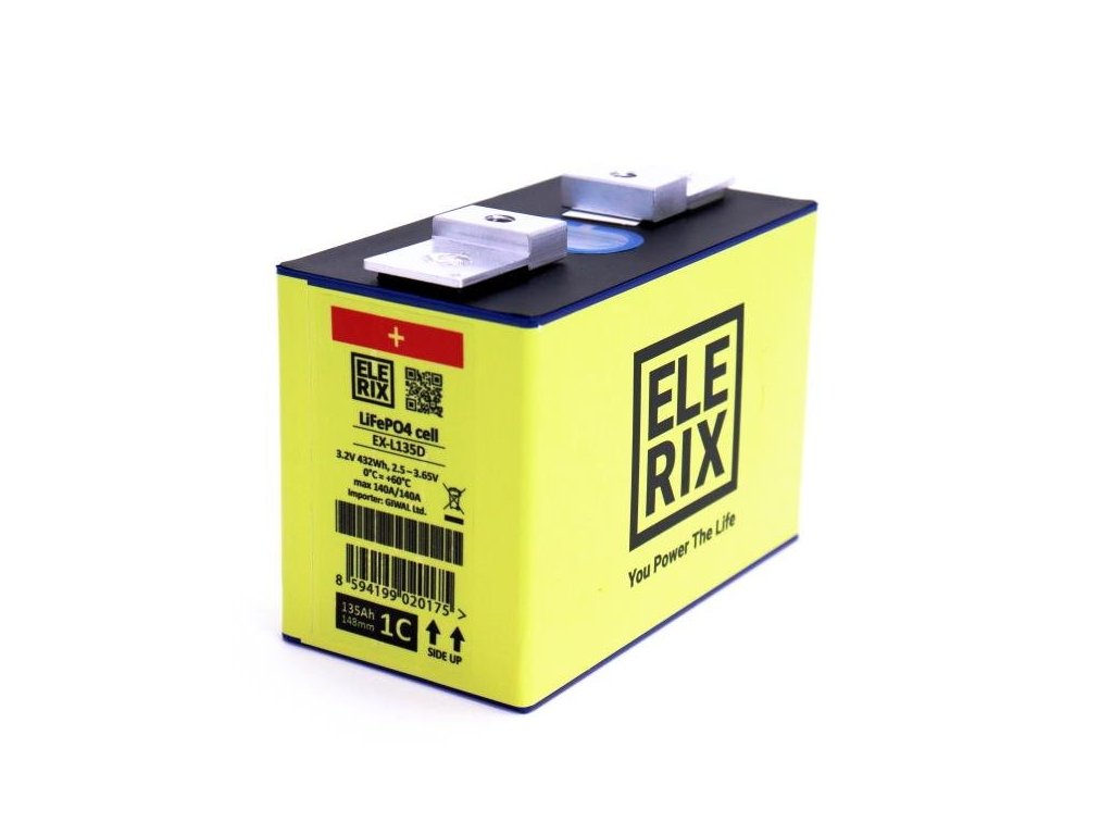 Priemyselný lítiový článok ELERIX s vysokou hustotou energie, vyrobený bezpečnou technológiou LiFePO4. Článok je vhodný na prepájanie do väčších celkov, čím vznikne batéria s menovitým napätím 12V / 24V / 48V atď.