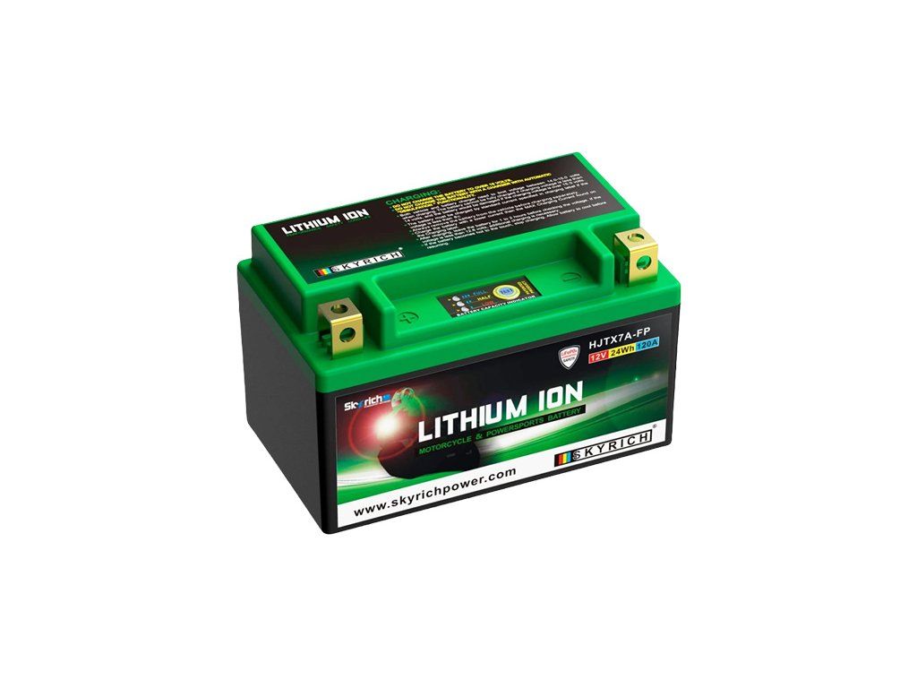 Všetky motocyklové štartovacie lítiové (LiFePO4) akumulátory výrobce Skyrich majú až 40 násobne väčší vybíjací prúd než je ich kapacita. Z dôvodu použitia lítiové technológie sú motobatérie Skyrich Lithium až o 66% ľahšie ako tradičné olovené batérie a dosahuje životnosť až 2000 cyklov nabitia. Každý moto-akumulátor LiFePO4 značky Skyrich má nízke samovybíjanie. Skladovateľnosť je až 1 rok pri teplote do 25 ° C. Výrobca odporúča pravidelné nabíjanie minimálne raz za 6 mesiacov.