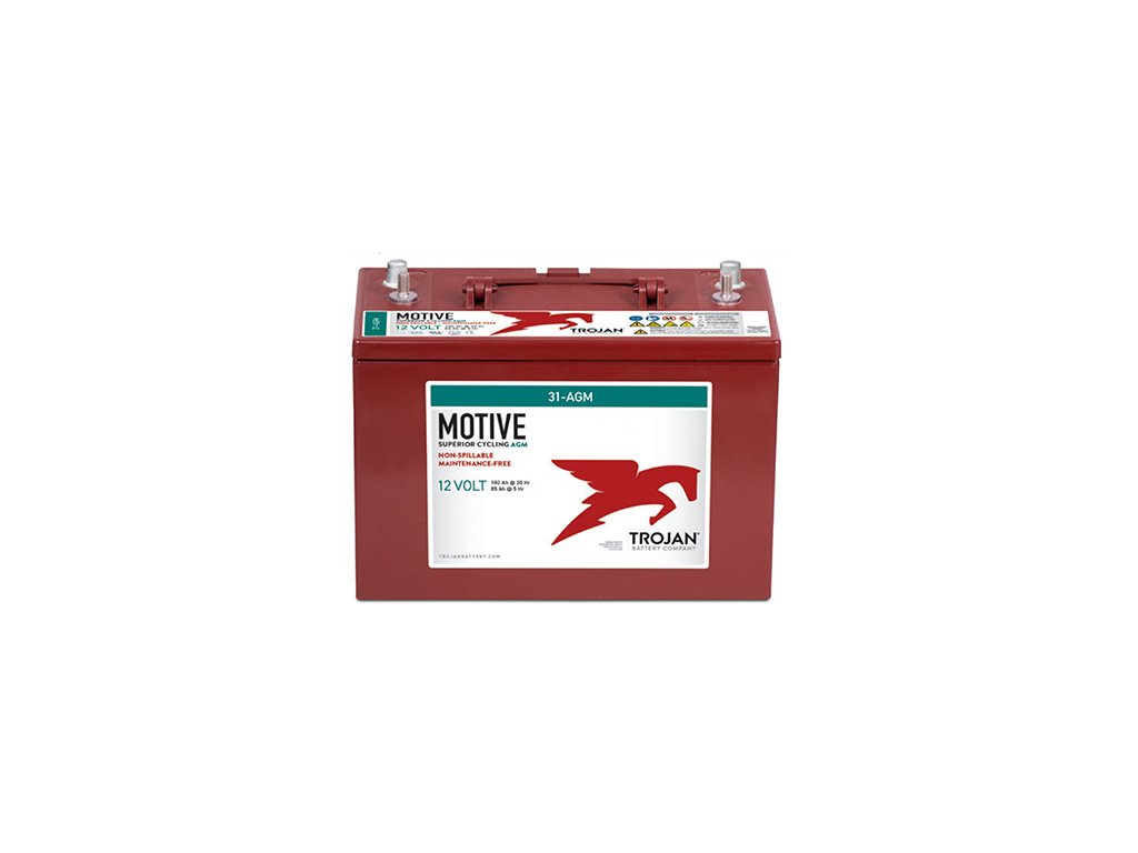 Duálne batérie Trojan MOTIVE 31-AGM (Made in U.S.A.) sú priemyselné batérie vyznačujúci sa špičkovou kvalitou, vynikajúcou cyklickou odolnosťou a vysokým štartovacím výkonom. Batéria Trojan Deep-Cycle AGM s technológiou extrémne silných mriežkových dosiek predstavujú výkonnú a cenovo výhodnú alternatívu v porovnaní s klasickými batériami. Batérie Trojan Deep-Cycle AGM sú úplne bezúdržbové v zmysle doplňovanie destilovanej vody. Ide o tzv. nerozlitelný blok (leakproof), batérie teda môže byť trvalo umiestnená aj pracovať v polohe na boku. Batérie Trojan sa vyznačujú robustnou konštrukciou, extrémne silnými mriežkovými doskami a špeciálnou zliatinou tej najvyššej kvality. Vďaka týmto špičkovým vlastnostiam sa batérie Trojan radí medzi najpoužívanejšie priemyselné batérie na celosvetovom trhu. Tieto batérie sú využívané najmä v priemyselnej oblasti malých pohonov - lodných systémov, karavanov a ďalej všade tam, kde je nutné pravidelné a spoľahlivé dodávky energie alebo vysoký štartovací výkon.