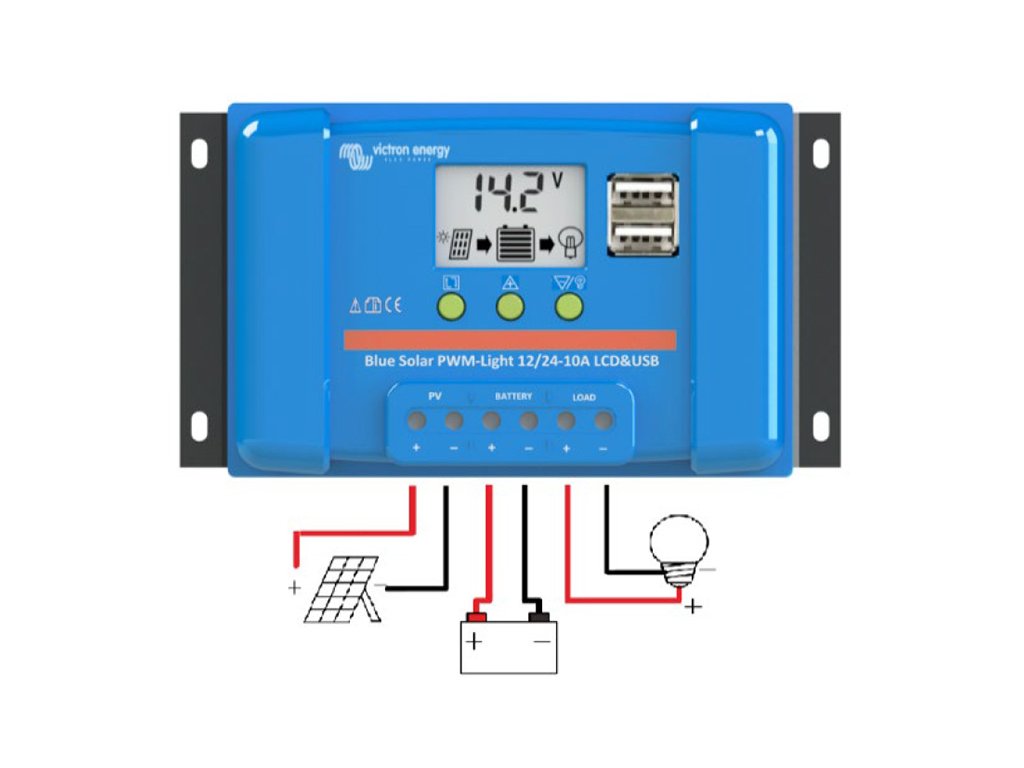 Solárny regulátor slúži na riadenie toku energie zo solárnych panelov a jej ukladanie do batérií. PWM regulátory BlueSolar sú ideálnym riešením pre menšie separátne solárne systémy s panelmi 12 alebo 24V (automatická detekcia). Výhodou je jednoduchá inštalácia a spoľahlivá prevádzka.