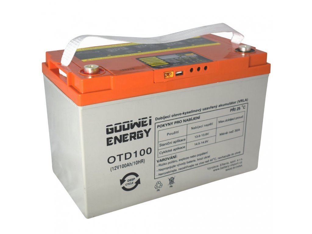 GOOWEI ENERGY rad OTD-DEEP CYCLE predstavuje novú generáciu trakčných akumulátorov ako nezávislý zdroj energie pre Vaše spotrebiče! Ideálne všade tam, kde nie je k dispozícii stály zdroj energie. Na chatách a chalupách, v karavanoch či obytných vozoch, na lodiach i na houseboatu alebo napríklad na dlhé kempovanie. Veľmi vhodné sú však aj ako zdroj energie pre elektromotory. U GOOWEI ENERGY radu OTD-DEEP CYCLE budete mať vždy energiu akumulátora pod kontrolou! Akumulátor je vybavený displejom, ktorý sa na 30s aktivuje stlačením tlačidla a zobrazí Vám aktuálne napätie batérie a orientačnú informáciu o zostatkovej kapacite. Systém ďalej disponuje funkciami, ktoré upozorňujú na hlboké vybitie akumulátora a na nutnosť jeho dobitia. Upozorneni budete takisto na abnormálne vysokú teplotu akumulátora alebo na vysoke nabíjacie napätie. Rešpektovaním kontrolných funkcií systému môžete výrazne prispieť k dosiahnutiu optimálnej životnosti akumulátora.