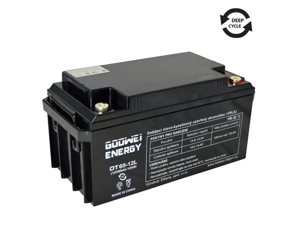 Trakčné gélové akumulátory značky Goowei Energy radu OTL. Ide o uzavreté olovené akumulátory v prevedení VRLA. Ide o konštrukciu, pri ktorej dochádza k regulácii vnútorného tlaku pomocou ventilov (VRLA - valve regulated lead acid = ventilom riadené olovené-kyselinové akumulátory). Technológia GEL, batéria neobsahuje elektrolyt v kvapalnom skupenstve, elektrolyt je stužen v hybridnom gélu (kombinácia s AGM), a tým je pevne viazaný v útrobách článkov batérie, čím je vylúčený jeho únik. Extra silná mriežka článkov zaisťuje vysokú cyklickú odolnosť batérie. Výborný pomer "cena / kvalita / výkon" radí batérie Goowei OTL medzi najpredávanejšie batérie na trhu. Batérie Goowei OTL možno využívať aj pre aplikácie v režime "stand by", kedy sú batérie pod trvalým napájaním a slúži ako záložný zdroj pri výpadku elektriny. Obzvlášť vhodné sú tam, kde dochádza k častým výpadkom alebo kde sa batérie hlboko vybíjajú.